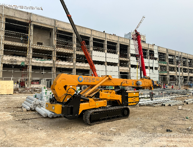 蜘蛛吊車具有操縱靈活,設(shè)備本身能旋轉(zhuǎn)360度 ,在平坦堅實的地面上能負(fù)荷行駛,由于履帶的作用,可在松軟、泥濘的地面上進(jìn)行作業(yè),并且可以在崎嶇不平的場地行駛,在裝配式結(jié)構(gòu)施工中,特別是單層工業(yè)廠房結(jié)構(gòu)安裝中,蜘蛛吊能幫助用戶解決很多困難,所以才能在高空作業(yè)平臺市場得到廣泛使用。